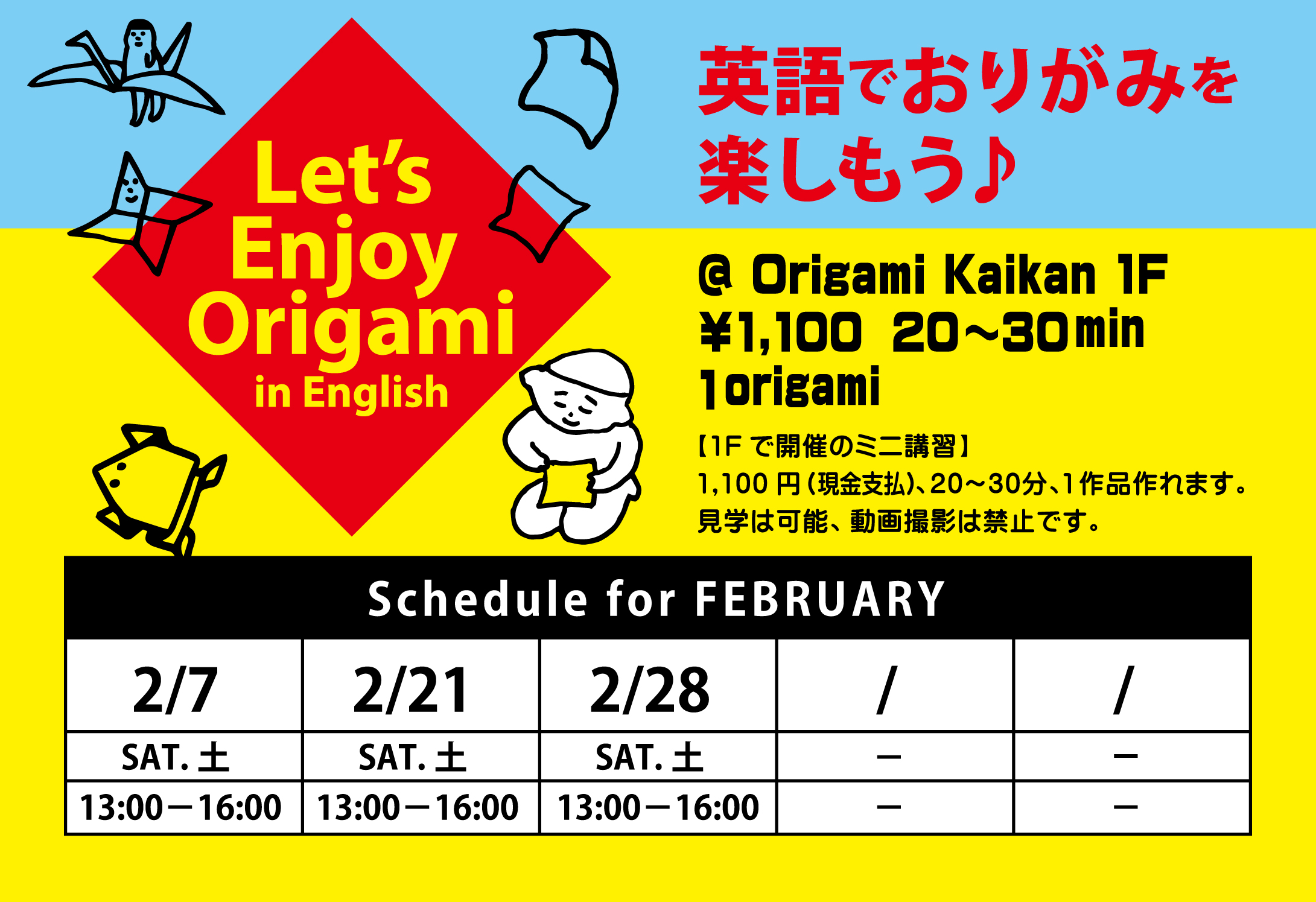 We hold easy and simple origami lessons 2–3 times a month.